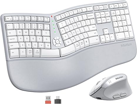 MEETION Ergonomic Keyboard and Mouse, Wireless Keyboard with Vertical Mouse, Split Curved Keyboard with Wrist Rest, Natural Typing USB Receiver Rechargeable Full Size, Windows/Mac/PC/Laptop, Large